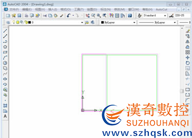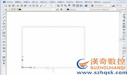 以加工長8寬6的矩形(矩形的左側(cè)邊的錐度角為5°)為例,首先在AutoCAD中畫出矩形,在AutoCut下拉菜單中選擇“生成加工軌跡”,生成一次加工軌跡,接下來在AutoCut下拉菜單欄中選擇“設(shè)置同步點”,提示欄會提示選擇對象,選擇已經(jīng)生成的加工軌跡,提示欄會提示請輸入起始點錐度角(左錐為負(fù),右錐為正),本例中起始點錐度角設(shè)為0°: